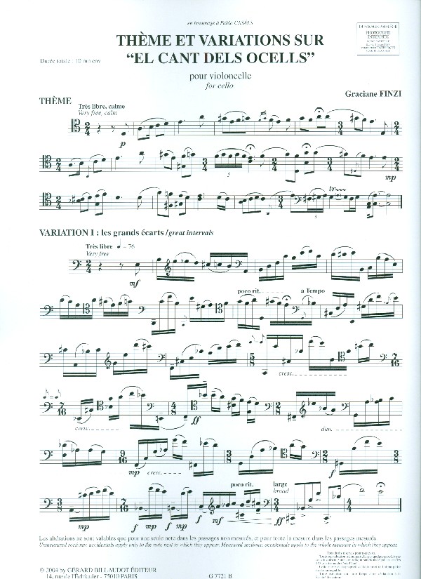 | Untertitel: | el cant dels ocells pour violoncelle |