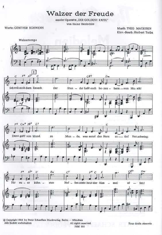 Ach wie herrlich Das Glück meines Lebens Das Leben beginnt erst wenn Der Weg ist so weit Einmal und nie wieder Es gescheh'n noch Wunder Es ist schön, viel zu schön Ich bleib bei dir Ich frage nicht, was morgen ist Ich muß dir soviel sagen Ja, dann ist er da, der Tag Mag auch der Sommer scheiden Nie kann ich vergessen ..und über uns der Himmel Verträumte Augen Walzer der Freude Warum bist du von mir gegangen Welt, wie bist du so wunderschön Wer bist du, den ich liebe Wir woll'n doch nicht so tun Zauber der Nacht