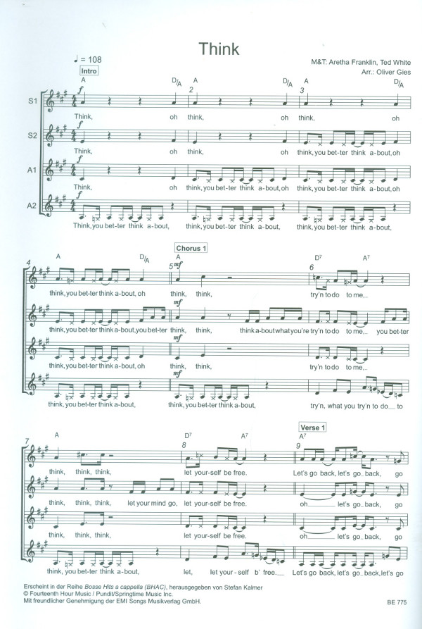 Bosse Hits a cappella White, Ted, Koautor Gies, Oliver, arr.