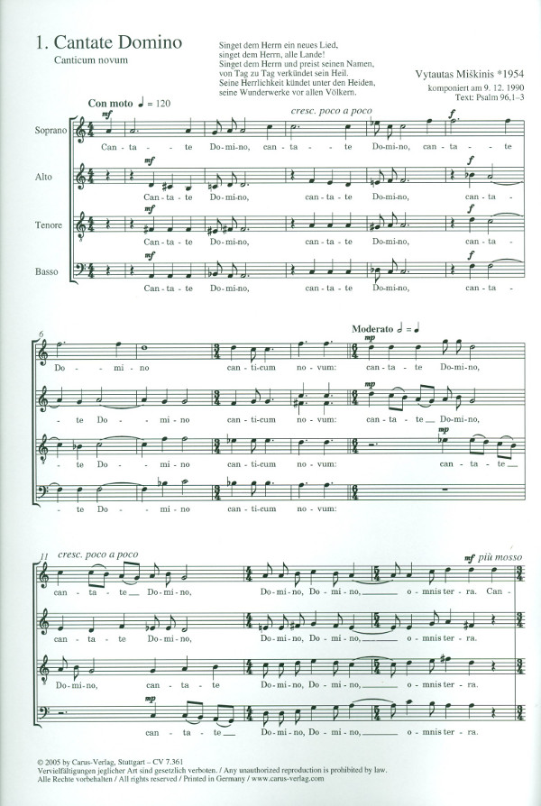 Psalm 96, 1-3, Text Cantate Domino Christus factus est Ad te Dominem levavi Ad te levavi Suscepimus Deus Miserere Tristis est anima mea Ave vera virginitas Gloriosa dicta sunt Tenebrae factae sunt