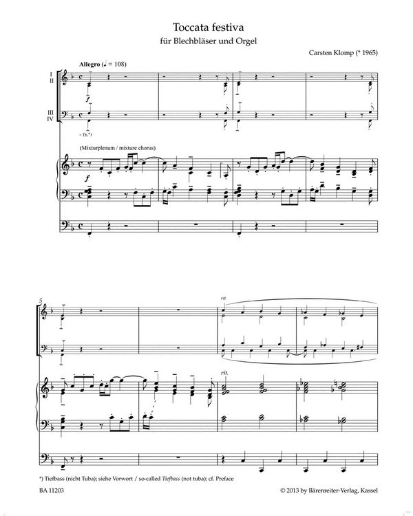 | Untertitel: | für Orgel und Blechbläser (Posaunenchor) Partitur und Bläserpartitur in C |