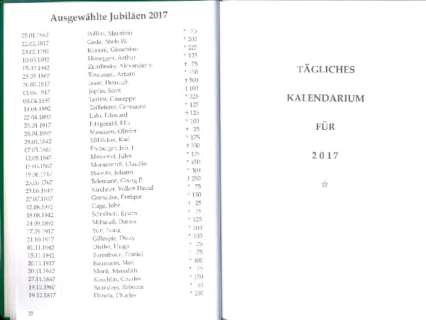 Produktinformationen "Tonkünstlerkalender Classic 2017"