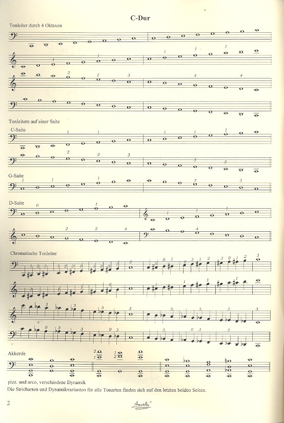 Nach Heft 1, wo Tonleitern und Doppelgriffe in der 1. - 4. Lage geübt werden, geht es jetzt im Heft 2 in allen Tonarten über das ganze Griffbrett. Geübt werden: Reihen Tonleitern auf einer Saite Tonleitern durch 4 Oktaven Terztonleitern, Lagenwechsel, Terzen, Sexten, Oktaven Tonleitern in den Daumenlagen, Flagolett Die Tonleitern sind schlicht und langsam dargestellt, die Stricharten finden sich extra im Anhang.