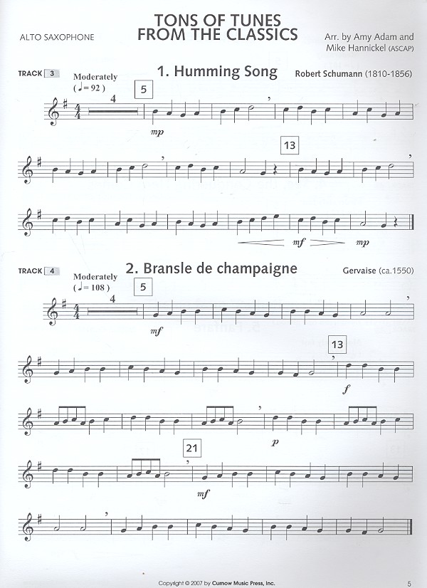 Humming song (Schumann) Musette (Bach) See the conquering hero comes (Händel) Fanfare (Corrette) Pathetique theme (Beethoven) Rondo alla turca (Mozart) Spring (Vivaldi) Scherzo (Clementi) Willhelm Tell (Rossini) Lullaby (Brahms) Funeral March (Chopin) Trumpet voluntary (Clarke) Largo from New world (Dvorak)