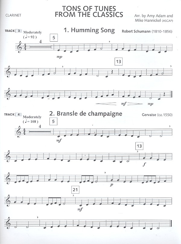 Humming Song (Schumann) Musette (Bach) See the conquering Hero comes (Händel) Fanfare (Corrette) Pathetique Theme (Beethoven) Rondo alla turca (Mozart) Spring (Vivaldi) Scherzo (Clementi) Willhelm Tell (Rossini) Lullaby (Brahms) Funeral March (Chopin) Trumpet Voluntary (Clarke) Largo from New World (Dvorak)