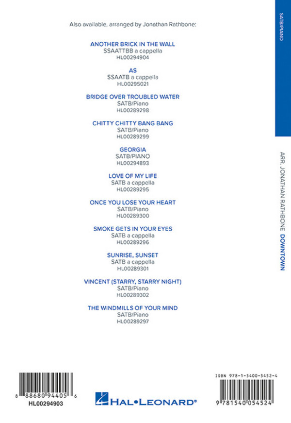 | Schlagworte: | Hal Leonard Pop Choral Series Pop und Rock |