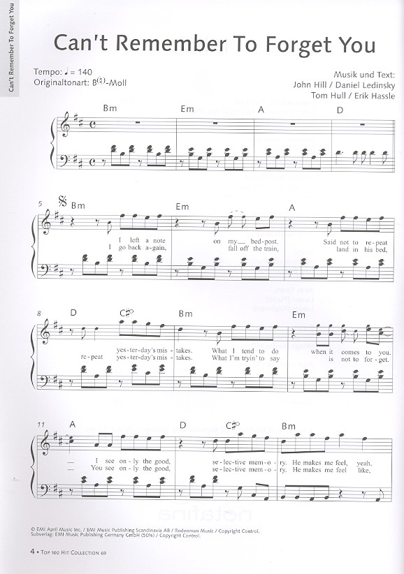 Can't Remember To Forget You (Shakira feat. Rihanna): A great big world say something True love (Pink feat. Lily Allen) Hero (Family of the year) Happy (Pharell Williams) Hey brother (Avicii) Lieder (Adel Tawil) Wings (Birds)