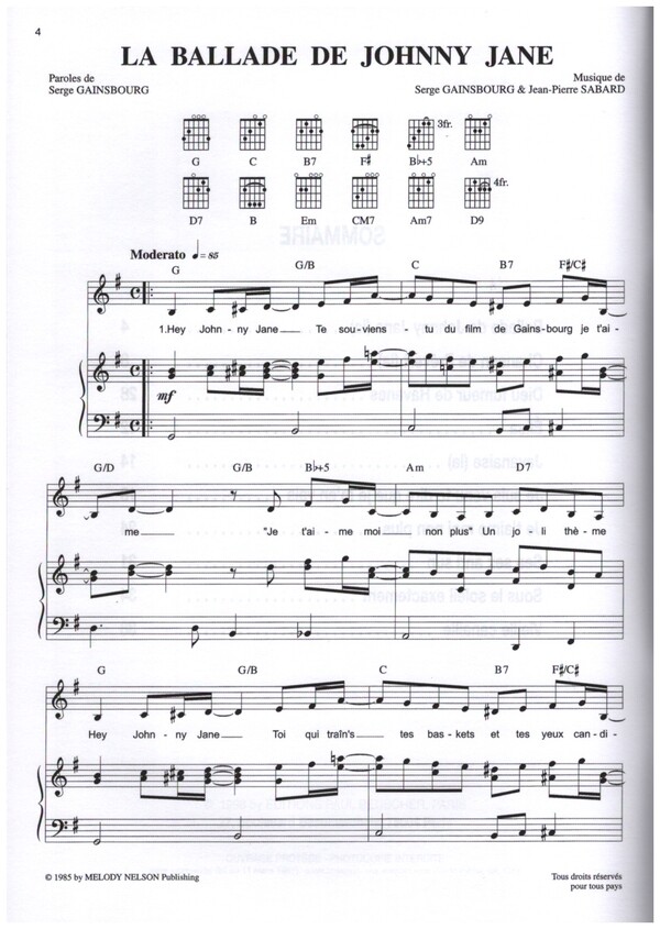La ballade de Johnny Jane La chanson de prevert Dieu fumeur de havanes Elisa La javanaise Je suis venu te dire que je m'en vais Je t'aime moi non plus Sea sex and sun Sous le soleil exactement Vieille canaille