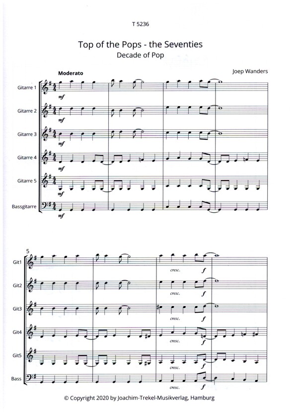 | Untertitel: | für 5 Gitarren und Bass Partitur und Stimmen |