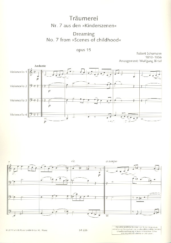 | Untertitel: | für 4 Violoncelli Partitur und Stimmen |