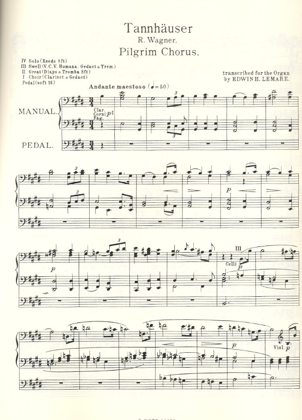 Pro musicis Lemare, Edwin, transc. Pilgerchor (Tannhäuser) Gebet der Elisabeth (Tannhäuser) Lied an den Abendstern (Tannhäuser) Vorspiel (Tannhäuser)