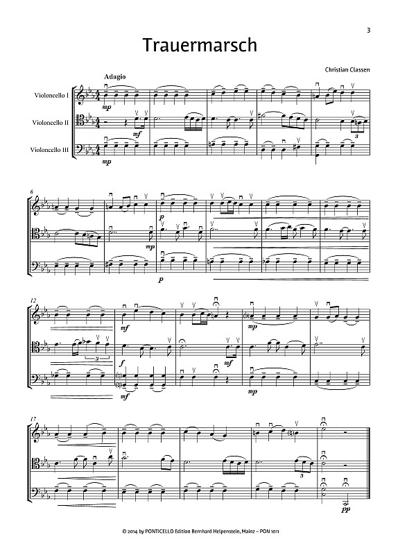 | Untertitel: | für 3 Violoncelli (Violine, Viola und Violoncello) Partitur und Stimmen |
