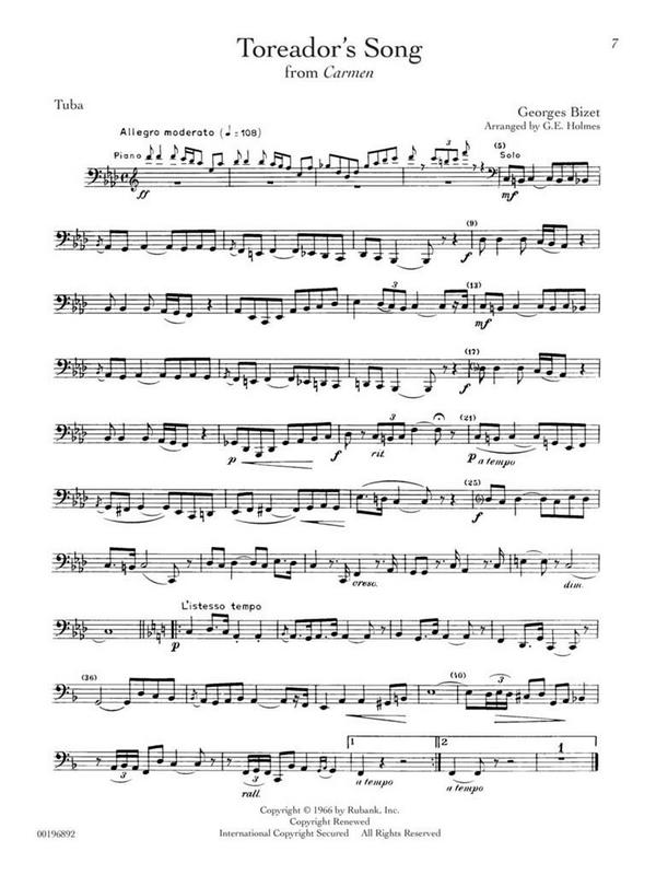 Classic Solo Literature from the Rubank Educational Library (includes printable Piano Accompaniments) Adagio and Finale Andante and Allegro Andante Cantabile Behemoth Blow The Man Down (Sea Shanty And Variations) Concertpiece Emmett's Lullaby In The Hall Of The Mountain King Leprechaun's Patrol The Mariner Serpent Of The Brass Toreador's Song