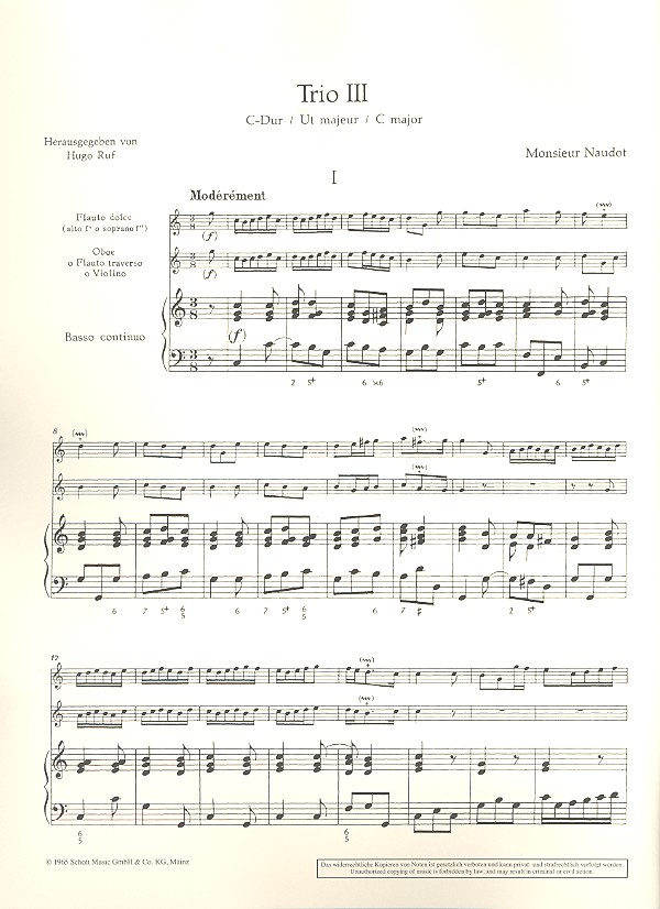 | Untertitel: | für Blockflöte (Alt oder Sopran), Oboe (Flöte/Violine) und Basso conti Partitur und Stimmen |