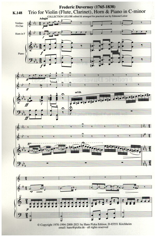 | Untertitel: | für Violine (Flöte, Oboe, Klarinette), Horn und Klavier Partitur und Stimmen |