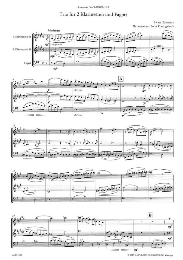 | Untertitel: | für 2 Klarinetten und Fagott Partitur und Stimmen |