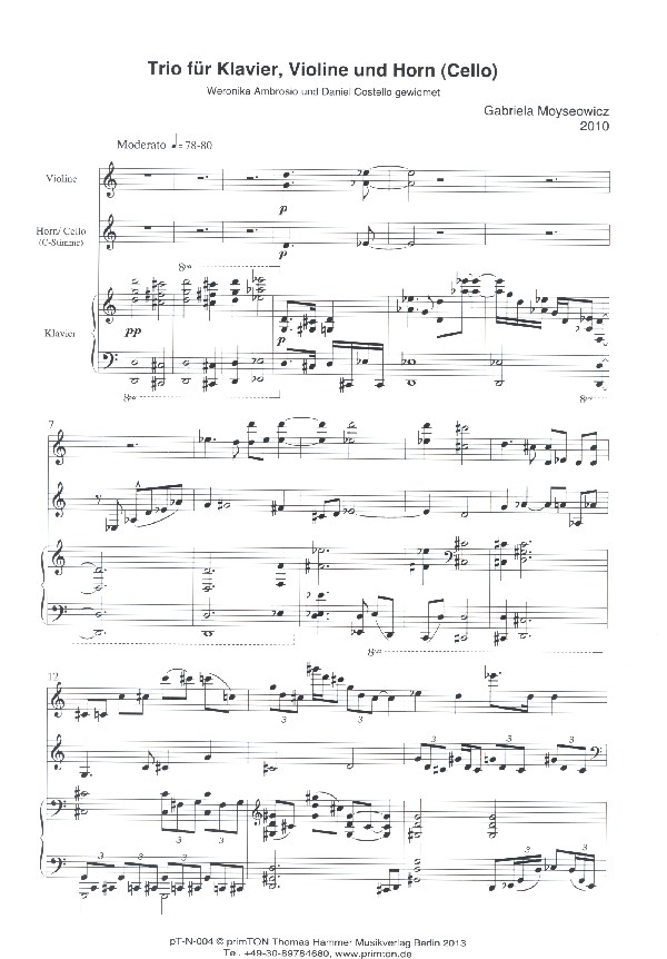| Untertitel: | für Violine, Horn (Violoncello) und Klavier Stimmen |