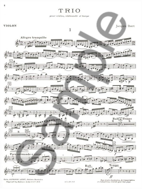| Untertitel: | pour violon, violoncelle et harpe, parties |