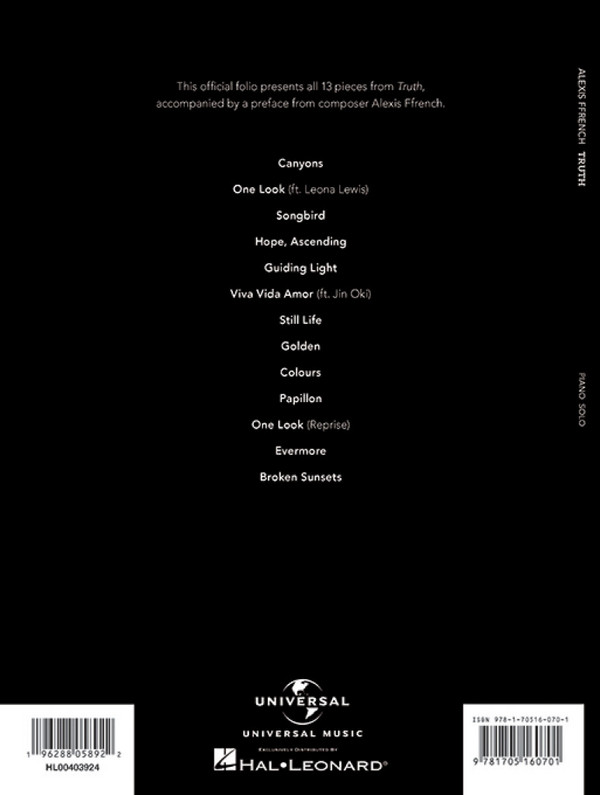 1. Canyons 2. One Look (ft. Leona Lewis) 3. Songbird 4. Hope, Ascending 5. Guiding Light 6. Viva Vida Amor (ft. Jin Oki) 7. Still Life 8. Golden 9. Colours 10. Papillon 11. One Look (Reprise) 12. Evermore 13. Broken Sunsets