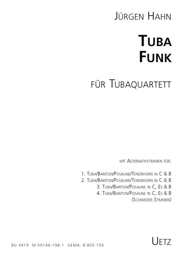 | Untertitel: | für 4 Tuben (Posaunen, Baritone, Tenorhörner) Partitur und Stimmen |