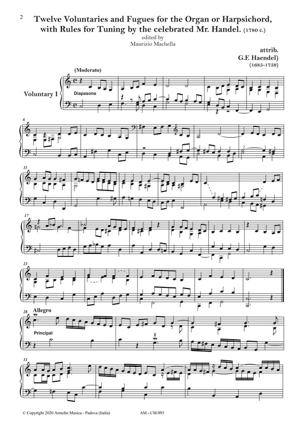 For the Organ or Harpsichord with Rules for Tuning by the celebrated Mr. Handel (1780 ca)