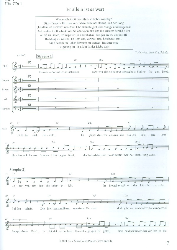 Gospel auf neuen Wegen Er allein ist es wert Schick dein Gebet zum Himmel Tears in Heaven Man in the Mirror Vater unser My Life is in your Hands Ich dreh mich um dich Komm her To my Father's House Du bist heilig It's a me Nobody knows He's got the whole World