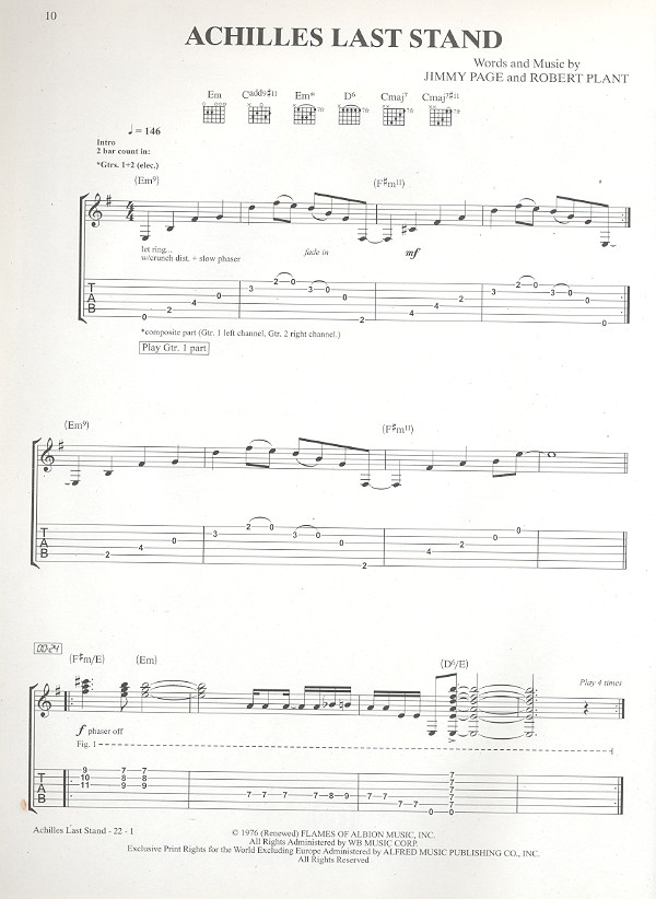 Achilles Last Stand All my Love Kashmir Nobody's Fault but mine Over the Hills and far away The Song remains the Same Stairway to Heaven Trampled under Foot