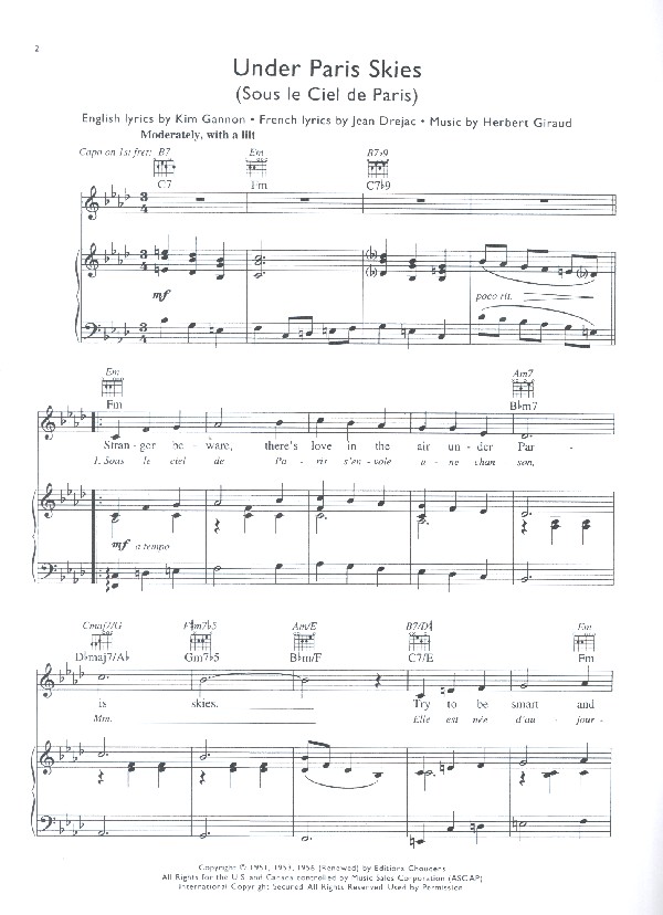 Drejac, Jean, lyrics Gannon, Kim, english lyrics Sous le ciel de Paris