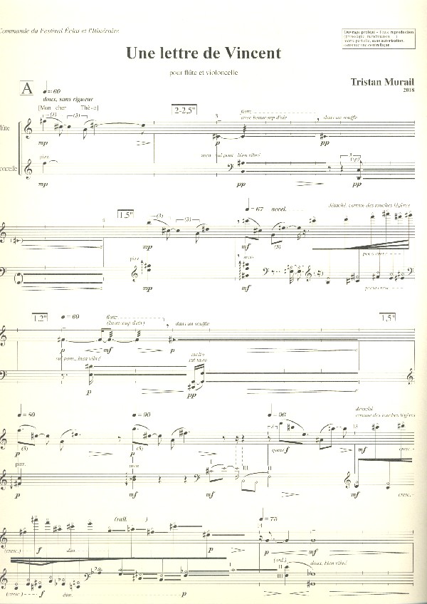 | Untertitel: | pour flûte et violoncelle 2 partitions |