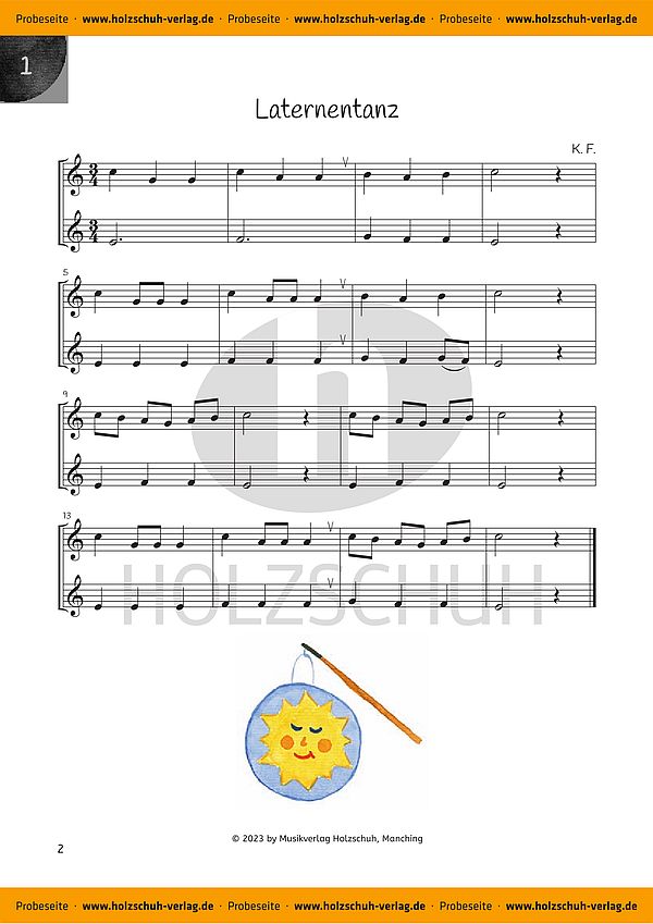 Für die ersten Jahre auf der Querflöte Laternenlicht und Weihnachtszauber ist die ideale Ergänzung für den Querflötenunterricht in den ersten Jahren. Das farbig illustrierte Heft gliedert sich in die beiden Themenbereiche Laternen- und Sankt Martinslieder sowie Weihnachts- und Winterlieder und kann mit insgesamt fast 100 Stücken über einen langen Zeitraum im Jahr verwendet werden. Die Lieder in beiden Kapiteln sind in sich nach Schwierigkeit sortiert und an den Lernfortschritt der Bände 1 bis 3 des Schulprogramms Unterwegs mit der Querflöte von Katharina Flaig angeglichen. Natürlich lässt sich das Heft auch unabhängig davon verwenden. Wie im Schulprogramm sind auch für Laternenlicht und Weihnachtszauber umfangreiche Zusatzmaterialien wie weitere Stücke und Klavierbegleitungen kostenlos online verfügbar unter: www.holzschuh-verlag.de/ unterweg pdf pdf pdf pdf pdf A, a, a, der Winter, der ist da A, B, C, die Katze lief im Schnee Abends, wenn es dunkel wird Ach bittrer Winter Adeste, fideles Alle fangt an Alle Jahre wieder Am Weihnachtsbaum die Lichter brennen Andachtsjodler Away In A Manger Coventry Carol Deck The Halls Der Christbaum ist der schönste Baum Der Heiland ist geboren Der Schneemann Der Weihnachtstraum Die drei Könige Durch die Straßen auf und nieder Ein armer Mann Ein Bettler saß im kalten Schnee Es ist ein Ros entsprungen Es sungen drei Engel Es wird scho glei dumpa Fröhliche Weihnacht überall Gatatumba Ghost Of John Glockenjodler Gloria in Excelsis Deo God Rest You Merry, Gentlemen Go, Tell It On The Mountains Guten Abend, schön Abend Guter König Wenzeslaus Hier wohnt ein reicher Mann Holt die Lichter aus dem Haus Ich geh mit meiner Laterne Ich hab eine feine Laterne Ich steh an deiner Krippen hier Ihr Kinderlein, kommet Il est né, le divin enfant In der Weihnachtsbäckerei In dulci jubilo In meiner Latern Jetzt ist der raue Winter da Jetzt kommt die heilige Weihnachtszeit Jetzt los, liaber Nachbar, mit Fleiß Jingle Bells Jolly Old Saint Nicholas Joy To The World Kleines Fräulein, kleiner Mann Kling, Glöckchen, klingelingeling Kommet, ihr Hirten La marche des Rois Langenwanger Jodler Lasst uns froh und munter sein Laterne, Laterne Laternenlied Laternentanz Leise rieselt der Schnee Lieber, guter Nikolaus Macht hoch die Tür Maoz Tzur Maria durch ein Dornwald ging Martin war ein frommer Mann Melchior et Balthazar Morgen, Kinder, wirds was geben Morgen kommt der Weihnachtsmann O du fröhliche O laufet, ihr Hirten O Little Town Of Bethlehem O Tannenbaum O wachet, nicht schlafet Pat-a-Pan Quem pastores laudavere Sankt Martin Sankt Martin kommt all Jahr zurück Sankt Martin lasst uns loben Schneeflöckchen, tanze Schneeflöckchen, Weißröckchen Schöner als der Mond Seht unsere Laterne Slyeli jsme v Betlém Stern über Bethlehem Stille Nacht, heilige Nacht Stille, stille, kein Geräusch gemacht Still, still, still, weils Kindlein schlafen will Süßer die Glocken nie klingen The First Noel Tochter Zion Tragt in die Welt nun ein Licht Vom Himmel hoch, da komm ich her Was soll das bedeuten We Three Kings Of Orient Are We Wish You A Merry Christmas Wir sagen euch an den lieben Advent