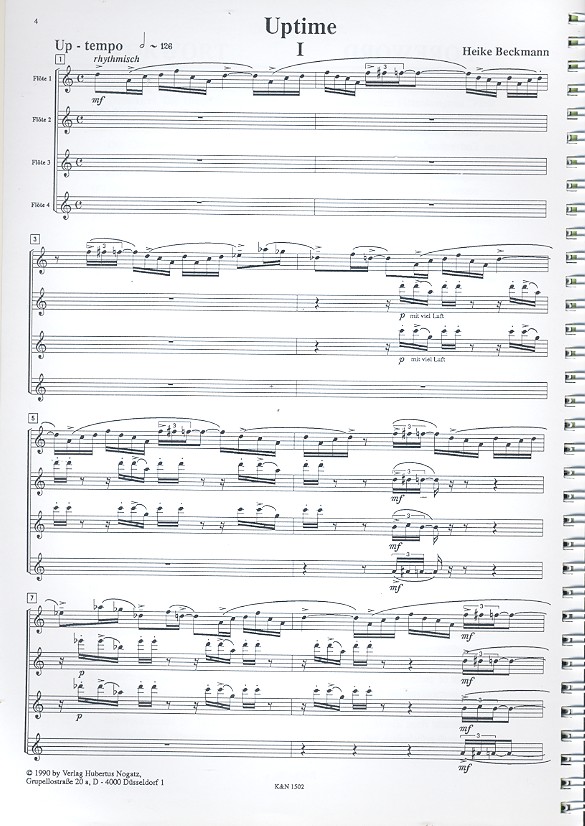 | Untertitel: | für 4 Flöten Partitur und Stimmen |
