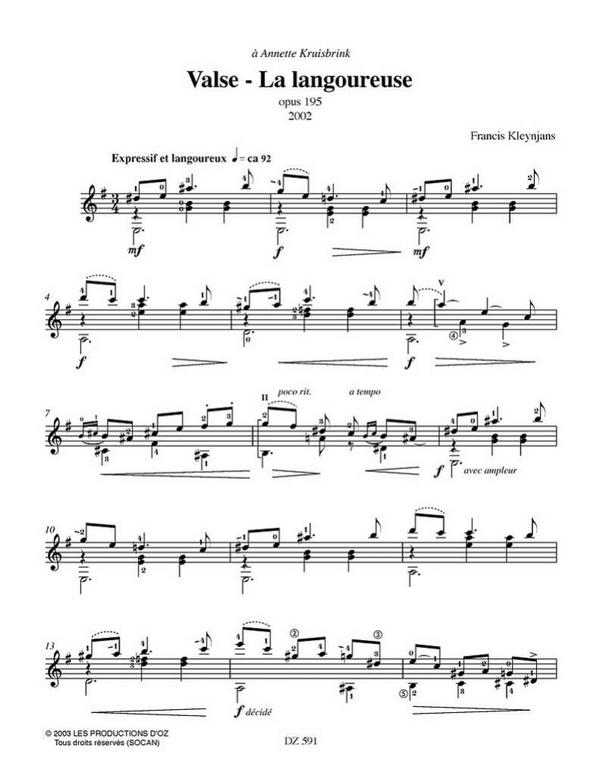 Valse - La langoureuse pour guitare