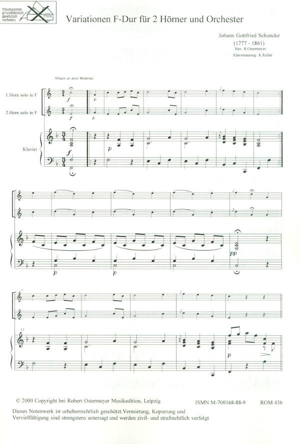 Ostermeyer, Robert, ed Keller, K., arr. Variationen über ein altdeutsches Lied