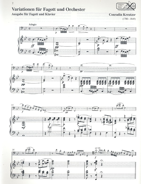 Variations for bassoon Universal fagott edition Joppig, Gunther, ed Durek, J.S., ed Turkoviv, Milan, ed Waterhouse, William, ed