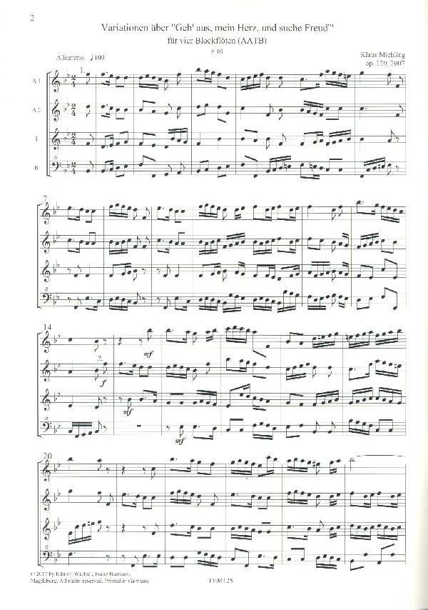 | Untertitel: | für 4 Blockflöten (AATB) Partitur und Stimmen |