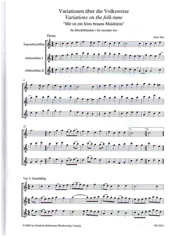 | Untertitel: | Maidelein für 3 Blockflöten (SAA) Partitur und Stimmen |