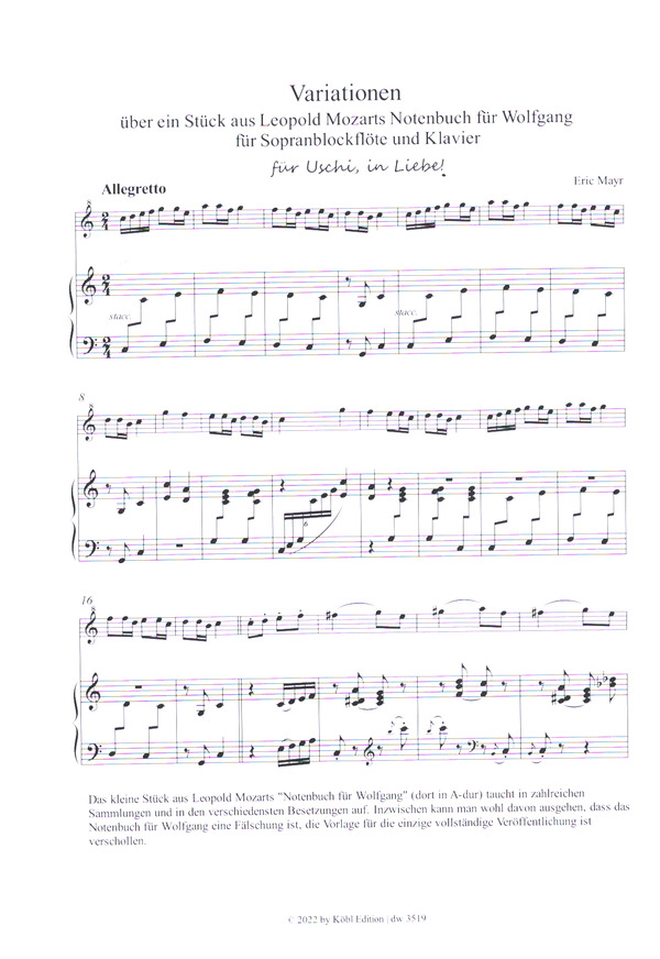 Variationen über ein Stück aus LMozarts Notenbuch