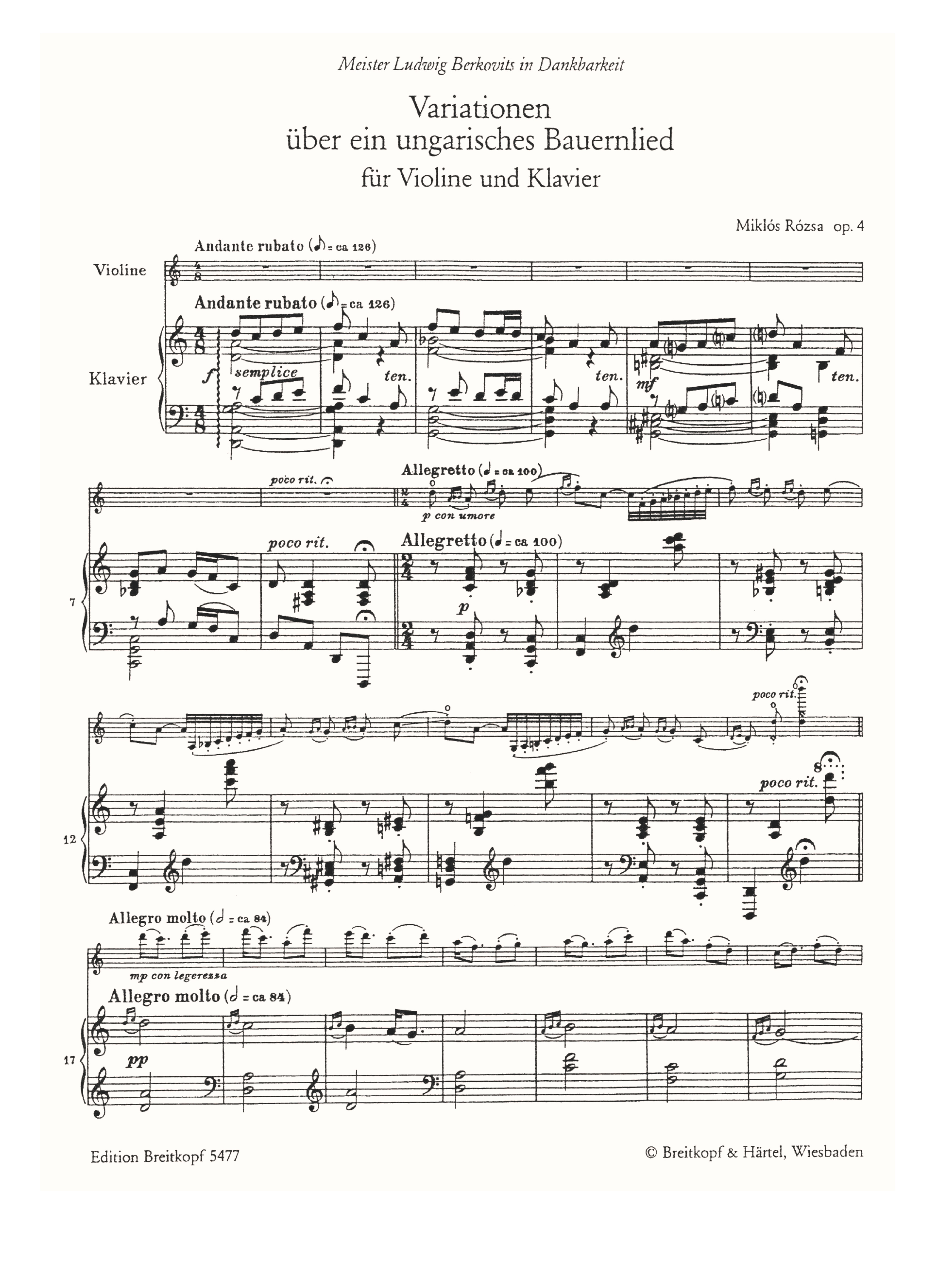Produktinformationen "Variationen über ein ungarisches Volkslied op.4"