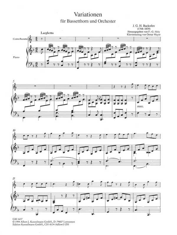 | Untertitel: | für Bassetthorn und Orchester für Bassethorn und Klavier |