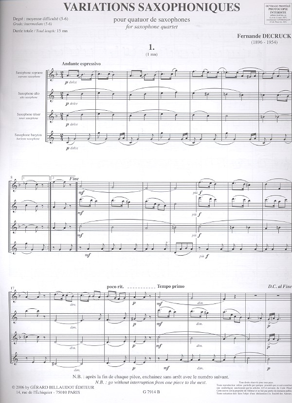 | Untertitel: | pour 4 saxophones (SATBar) partition et parties |