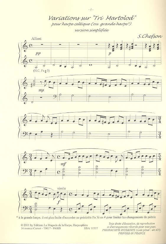 | Untertitel: | pour harpe celtique (grand harpe) |