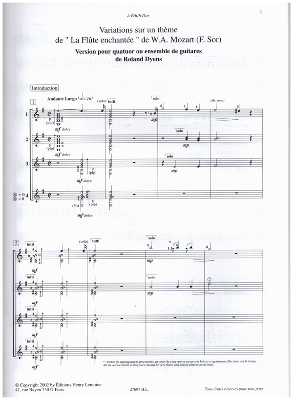 | Untertitel: | La flute enchantée de Mozart pour quatuor ou ensemble de guitares, part.+parties |