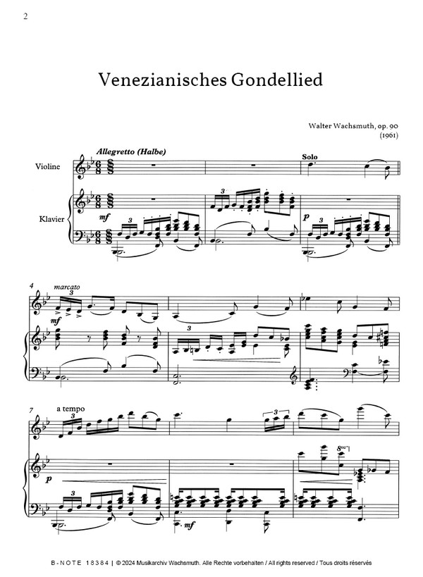 Produktinformationen "Venezianisches Gondellied für Violine und Klavier op.90"