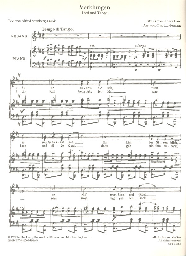 Steinberg-Frank, Alfred, Text Lindemann, Otto, arr. Lied und Tango