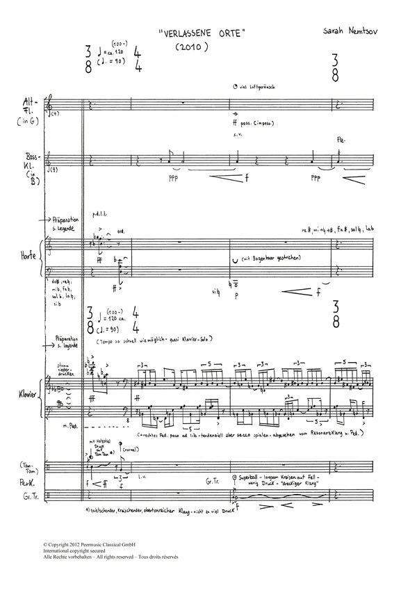 | Untertitel: | für Altflöte, Bassklarinette, Harfe, Klavier und Schlagzeug Partitur und Stimmen |