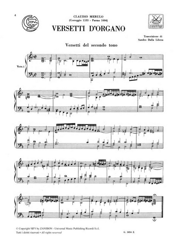 Dalla Libera, Sandro, Transkription Versetti del secondo tono Magnificat primi toni Messa domenicale Messa degli apostoli Versi del secondo tono Versi dell'ottavo tono Versi del primo tono Passo e mezzo