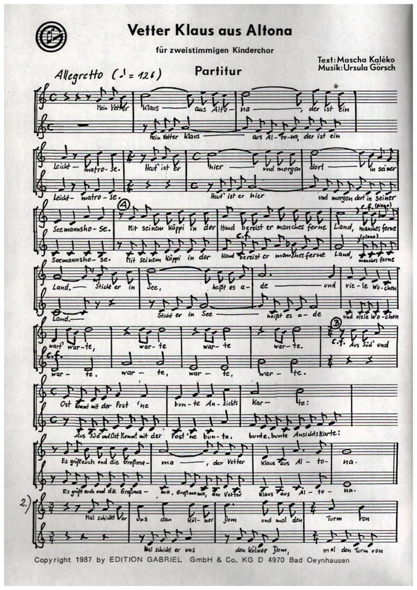 Produktinformationen "Vetter Klaus aus Altona für Kinderchor"