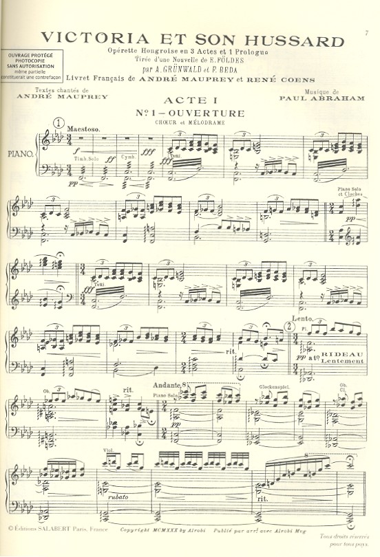 Victoria und ihr Husar Operette hongroise en 3 actes en 1 prologue