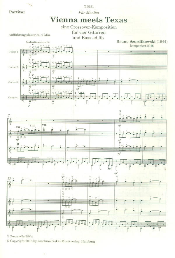 | Untertitel: | für 4 Gitarren und Bass ad lib. Partitur und Stimmen |