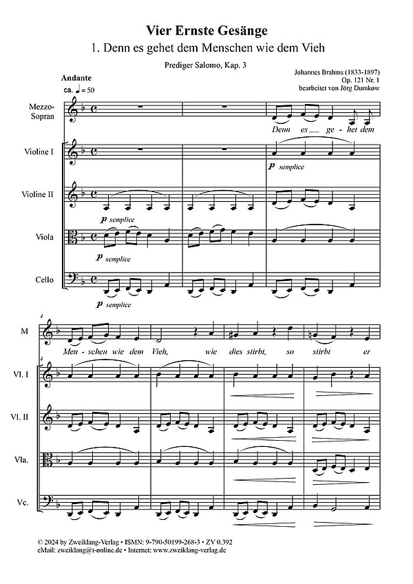 Denn es gehet dem Menschen wie dem Vieh Ich wandte mich und sah alle O Tod, wie bitter bist du Wenn ich mit Menschen und mit Engelszungen redete